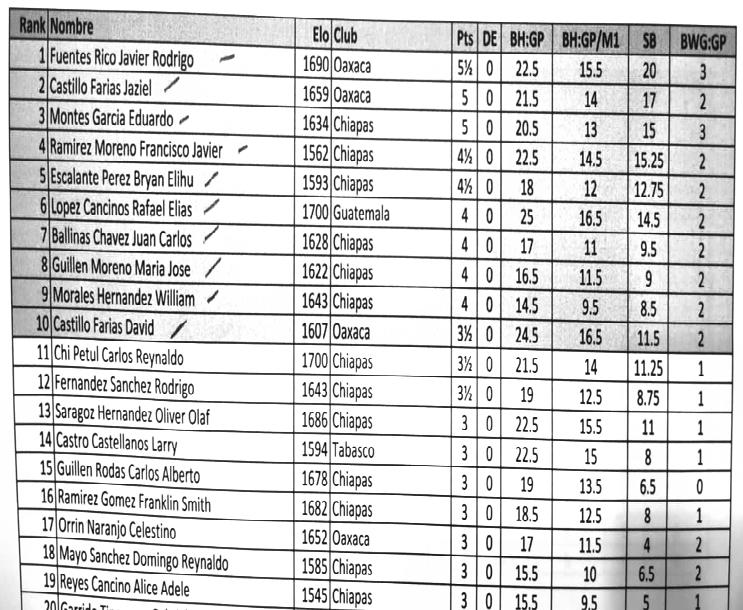 se Disputó Bajo el Sistema Suizo a Siete Rondas. Ver Tablas de Posiciones en Interiores.