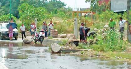 Alberto Gutiérrez dijo al rotativo EL ORBE, que los desagües de agua que tenían en las banquetas de sus viviendas, fueron destrozadas por la maquinaria que realizó el tendido del material que usaron para rehabilitar el camino de terracería que atraviesa la