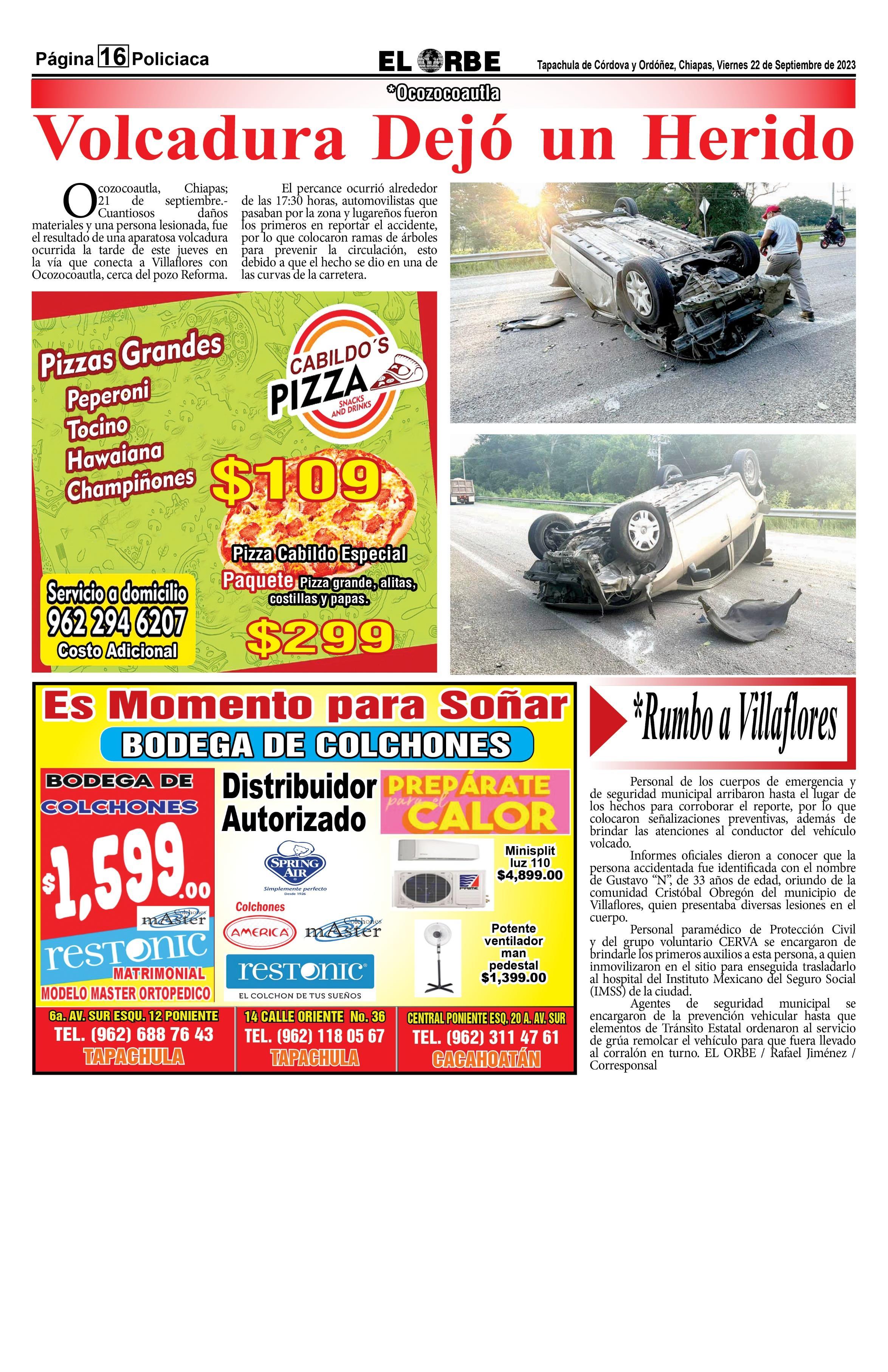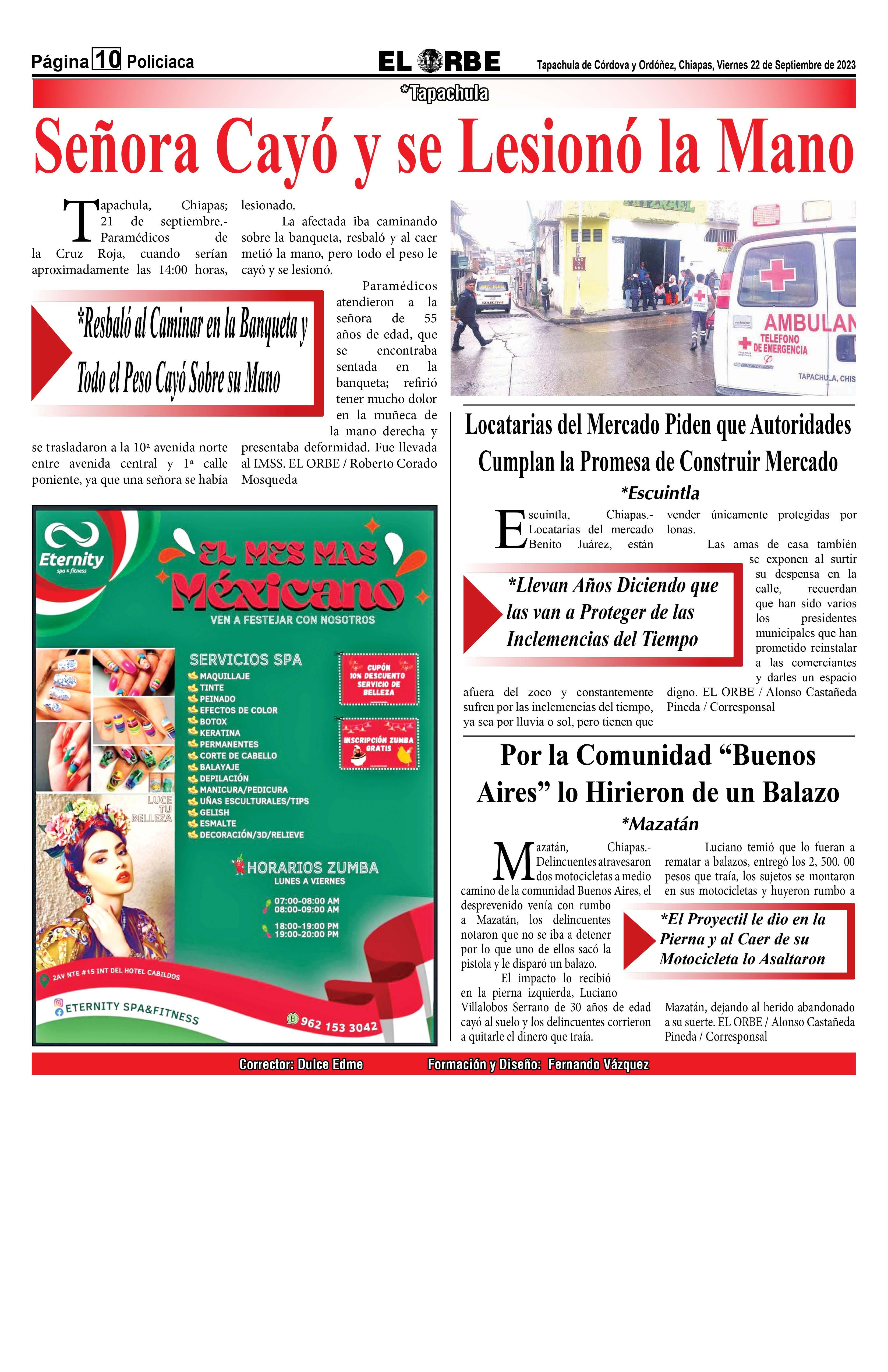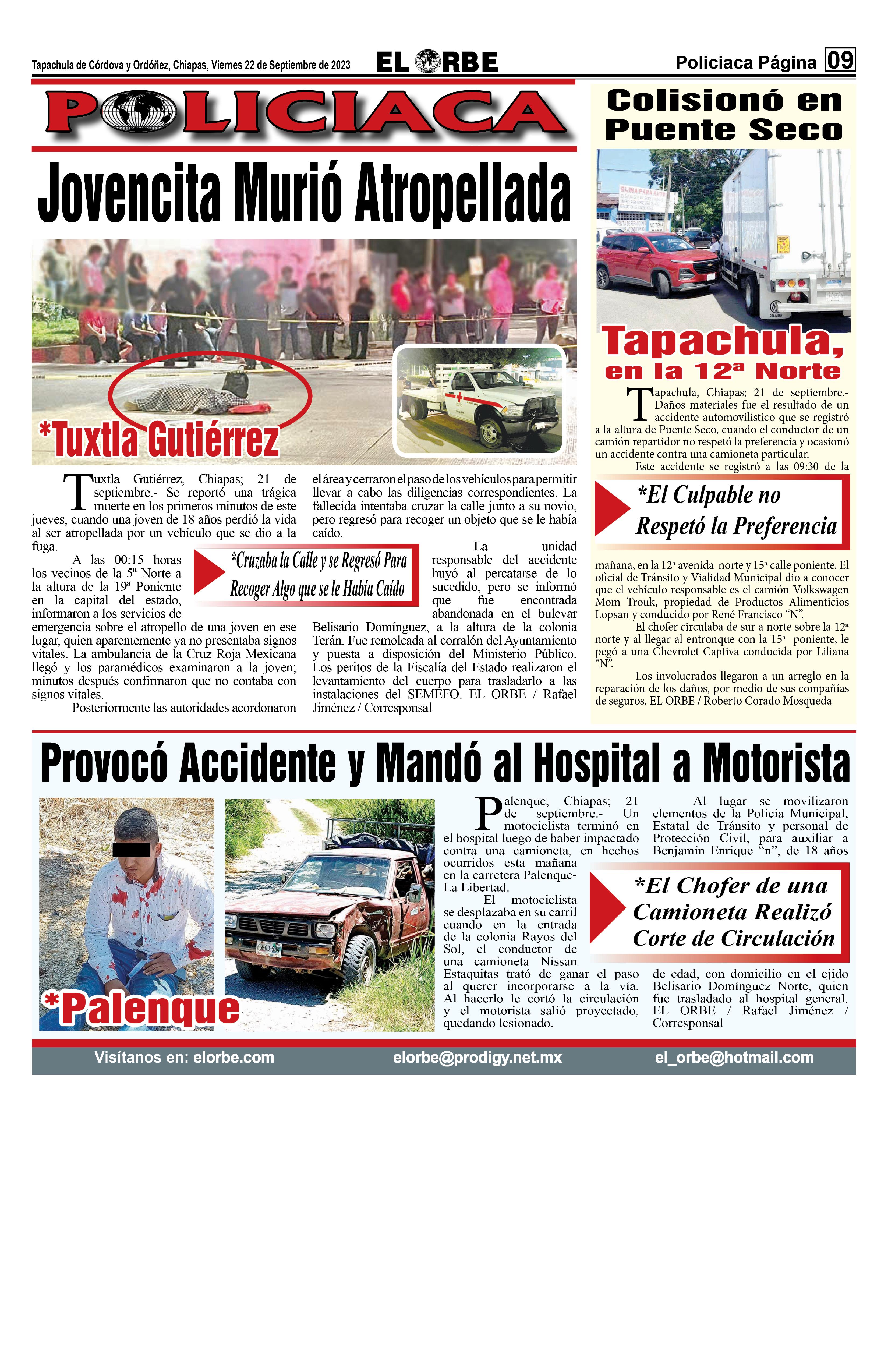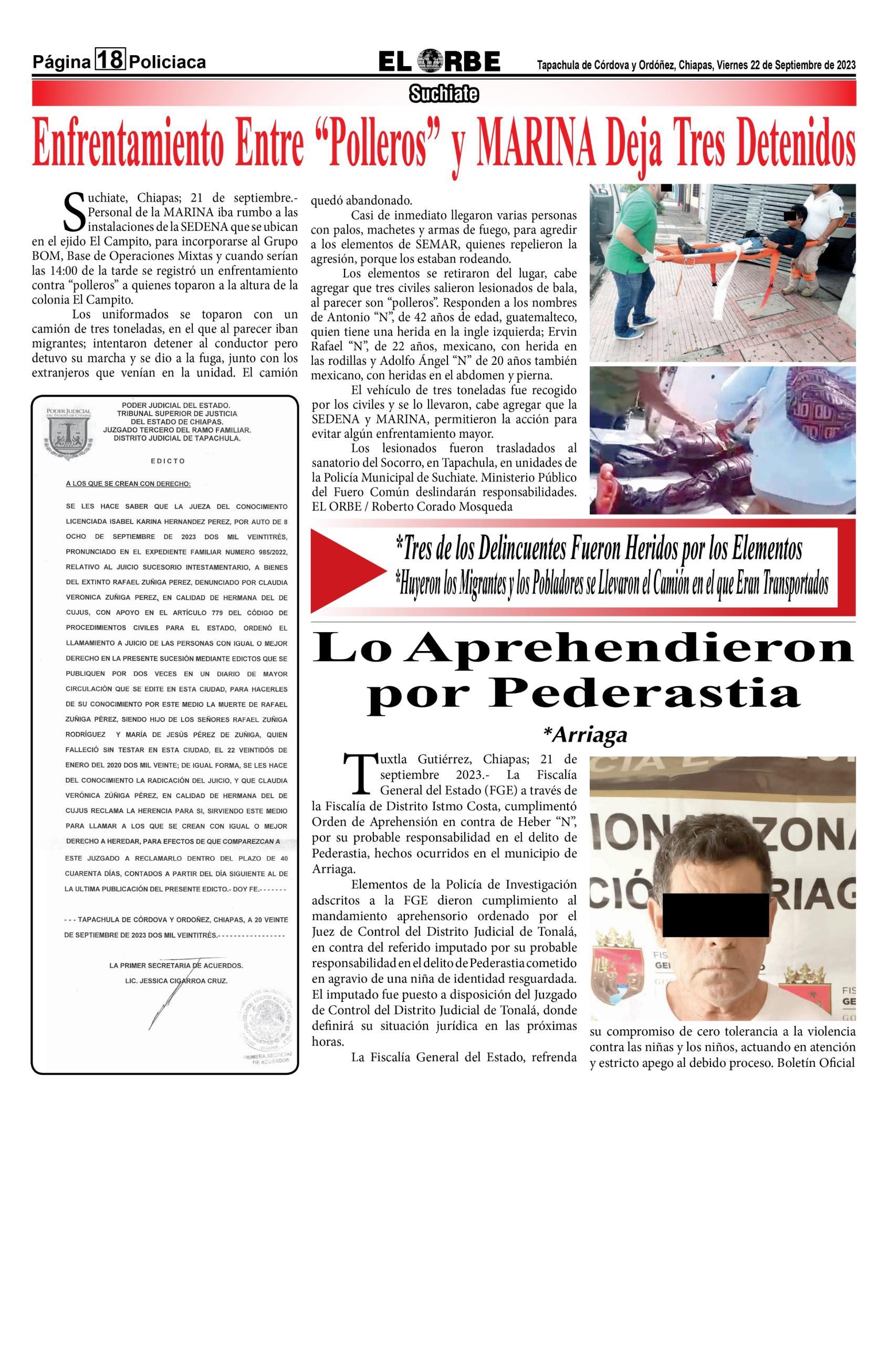 Tapachula de Córdova y Ordóñez, Chiapas; Viernes 22 de Septiembre de 2023 Página