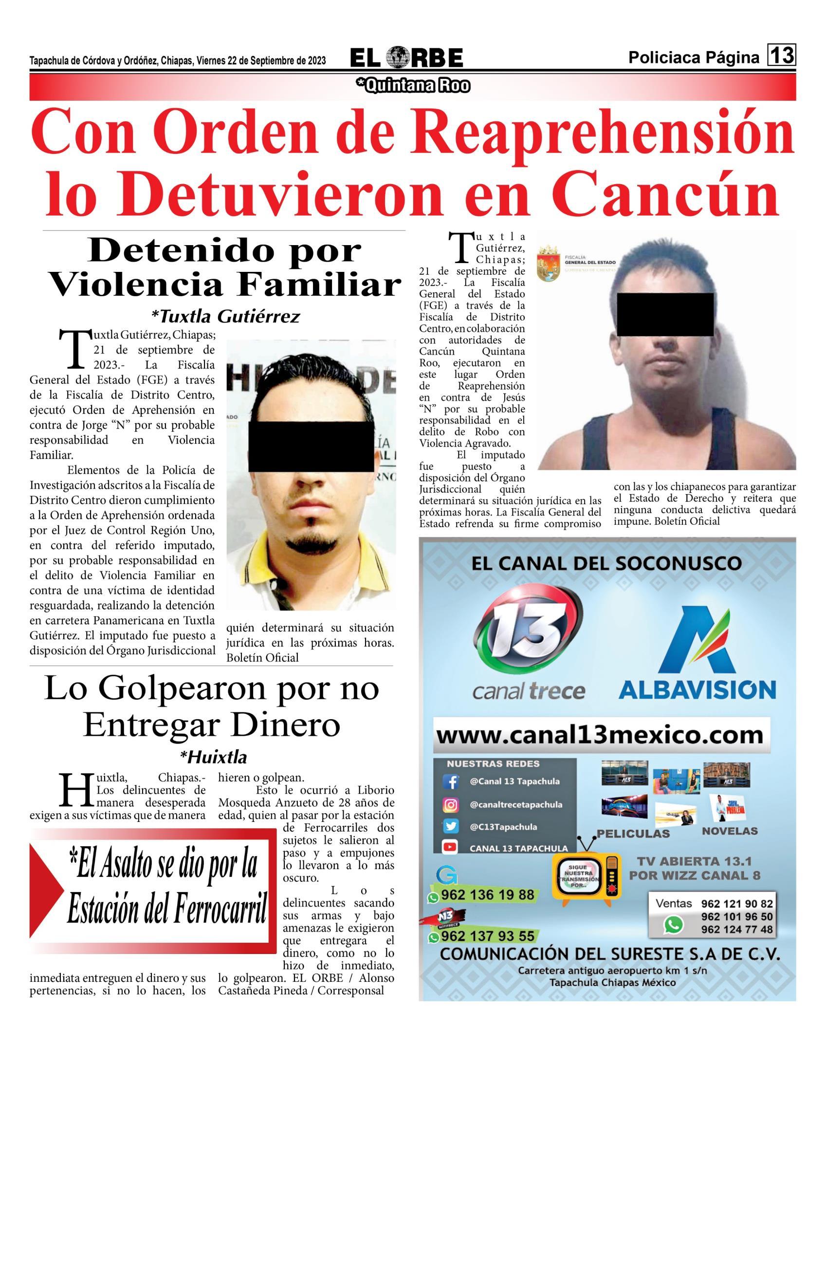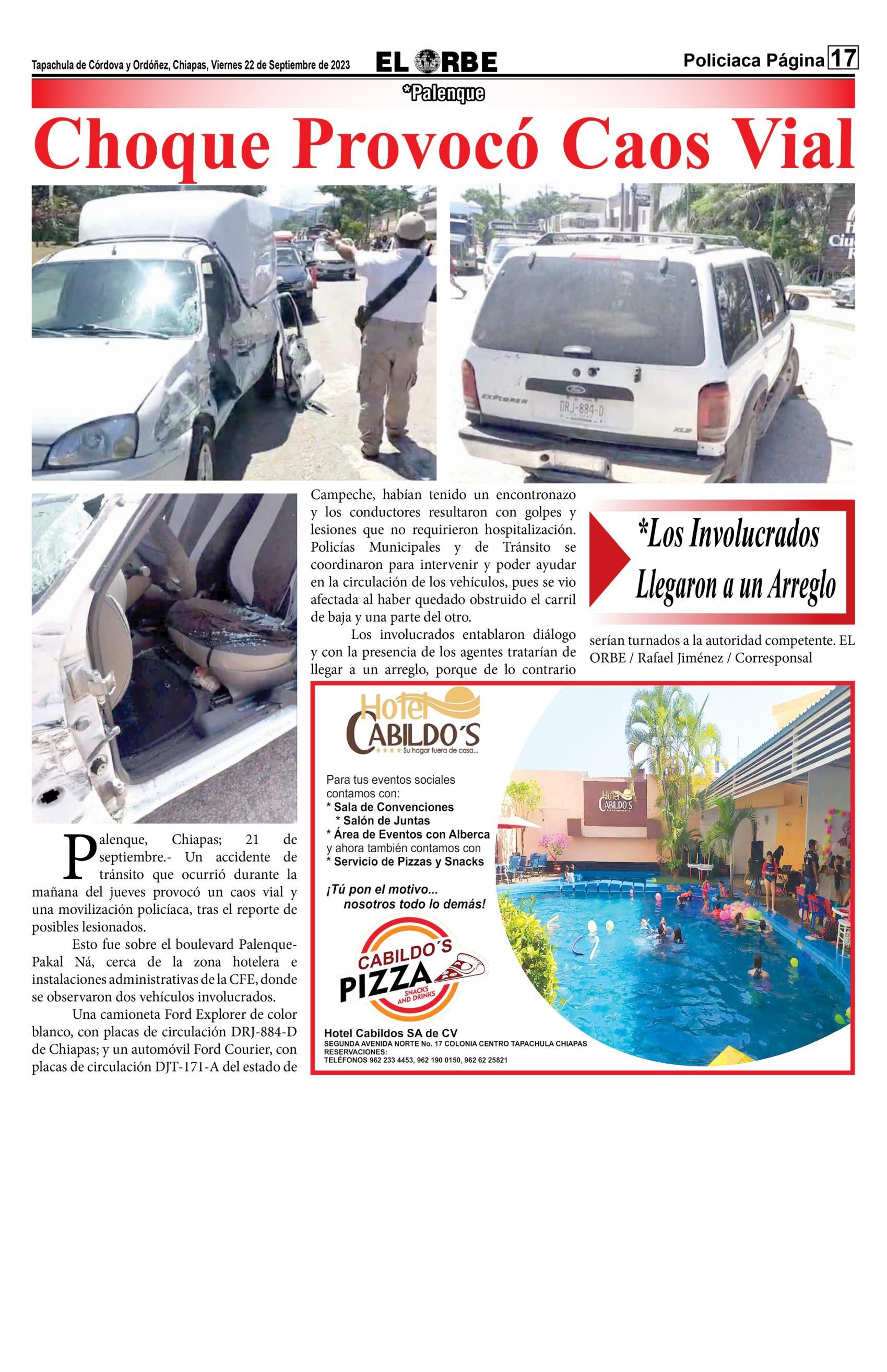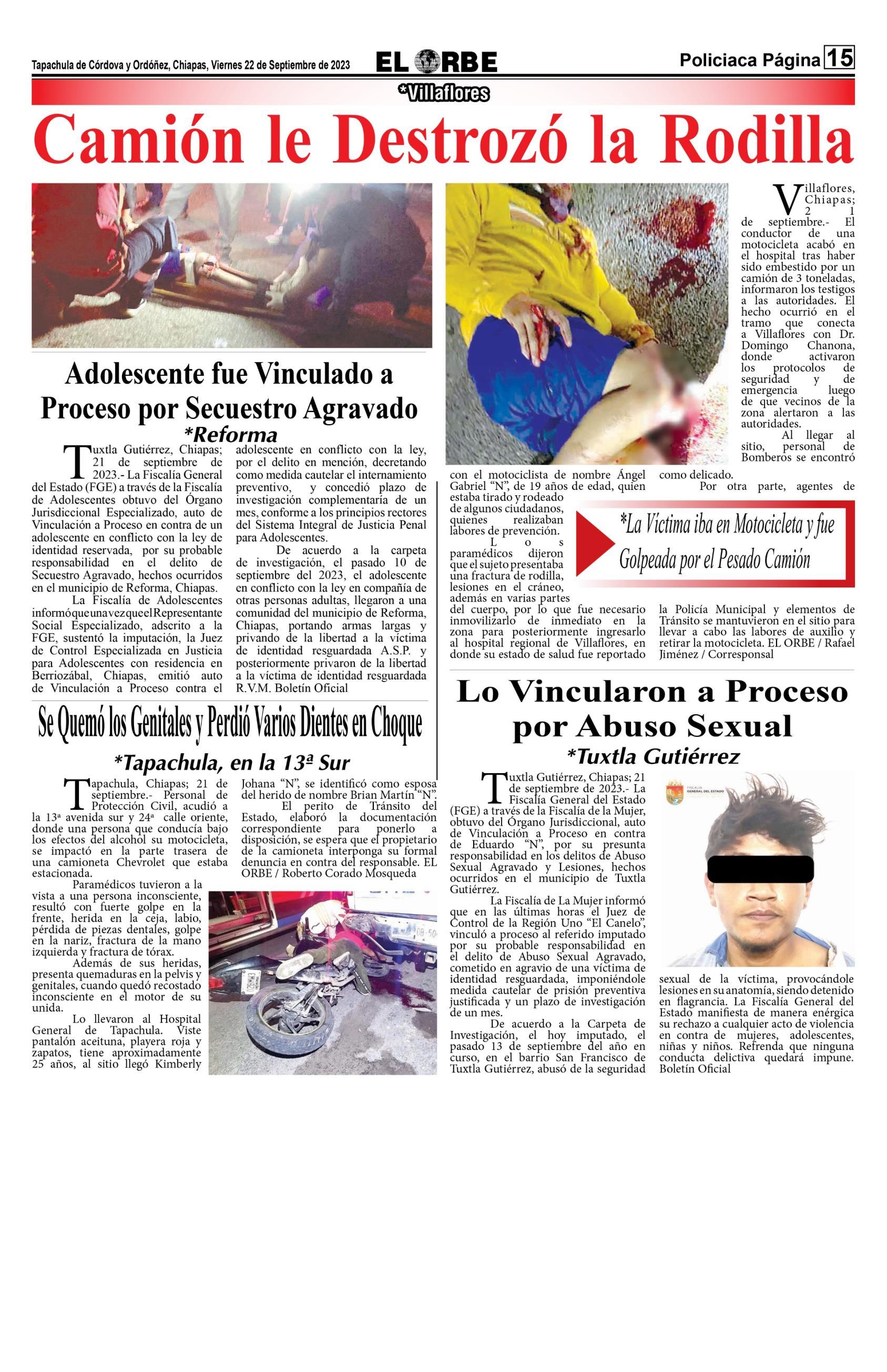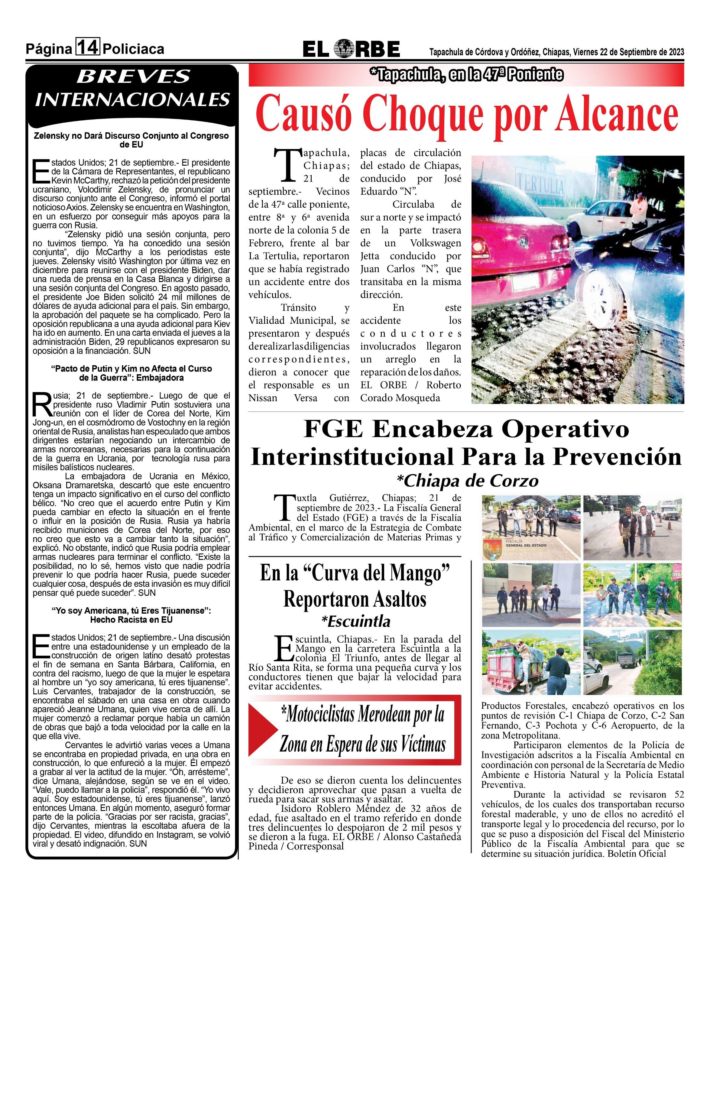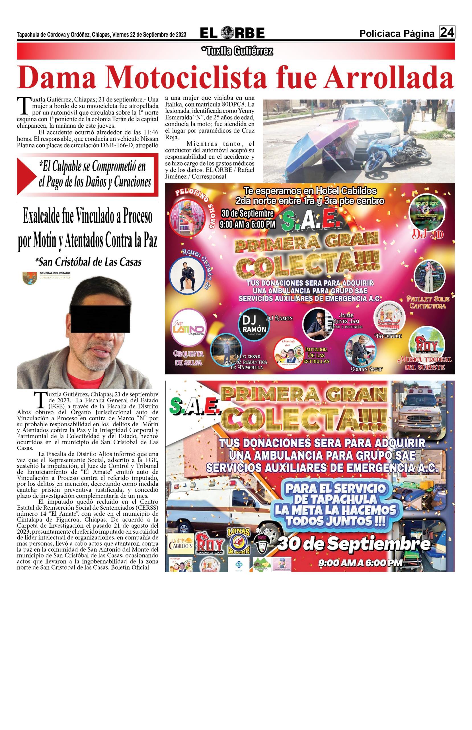 Tapachula de Córdova y Ordóñez, Chiapas; Viernes 22 de Septiembre de 2023 Página