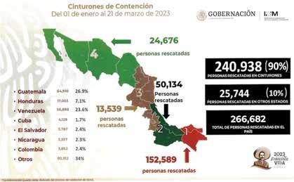 De acuerdo al INM, del 1o. de enero al 21 de marzo del presente año; los cinturones de contención a nivel nacional han rescatado un total de 266,682 personas migrantes, ubicando a 152, 589 de ellos, en la estación migratoria de Suchiate en la frontera sur.