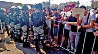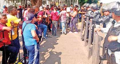 Al inicio les exigieron que hicieran larguísimas filas de varias cuadras de largo, pro conforme pasaron las horas y la temperatura ambiental se acercaba a los 40 grados centígrados, la inconformidad iba creciendo hasta que los ánimos empezaron a salirse de control. Para entonces arribaron granaderos de la Guardia Nacional (GN) con equipos antimotines y de inmediato fueron desplegados para formar barreras e impedir que los manifestantes llegaran hasta las oficinas. Por fortuna no hubo la necesidad de someterlos con la fuerza pública.