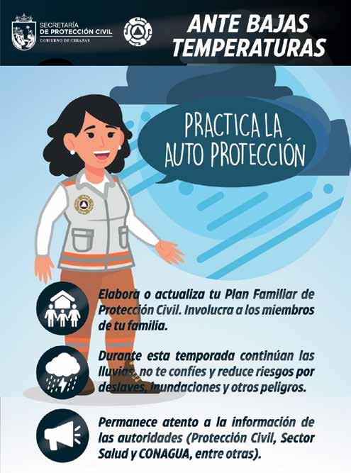 Temperaturas mínimas de 0 a 5 °C con posibles heladas: zonas montañosas de Baja California, Baja California Sur, Sinaloa, Michoacán, Querétaro, Ciudad de México, Morelos, Tlaxcala, Hidalgo, Tamaulipas, Veracruz, Oaxaca y Chiapas. Sun