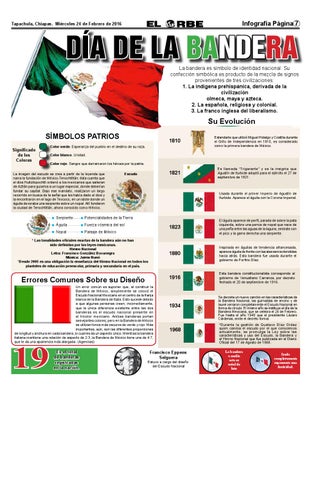 DÍA DE LA BANDERA La bandera es símbolo de identidad nacional. Su confección simbólica es producto de la mezcla de signos provenientes de tres civilizaciones: 1. La indígena prehispánica, derivada de la civilización olmeca, maya y azteca. 2. La española, religiosa y colonial. 3. La franco inglesa del liberalismo.
