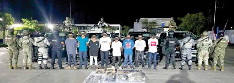 Villahermosa, Tab., 24 de Enero.- A través del Grupo Especial Tabasco, en coordinación con la FIRT Olmeca, se logró la detención de ocho masculinos como presuntos responsables de los delitos contra la Ley General de Salud y Portación de Arma de Fuego exclusivo del Ejército Mexicano, en el municipio de Macuspana.
