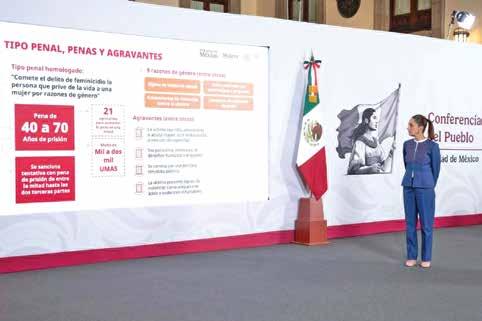 La fiscal General de la República, Ernestina Godoy Ramos, detalló que para atender la violencia feminicida se requiere una reforma al inciso A de la fracción XXI del artículo 73 de la Constitución; esto facultará al Congreso de la Unión para expedir la Ley y que este delito se clasifica como tipo penal homologado. Se reconocerán nueve razones de género, tales como signos de violencia sexual, antecedentes de violencias, delito motivado por estereotipos o prejuicios y la existencia de relaciones de poder. Se establece una pena de 40 a 70 años de prisión; se sanciona la tentativa con pena de prisión de entre la mitad y las dos terceras partes, además de una multa de mil a dos mil UMAS.
