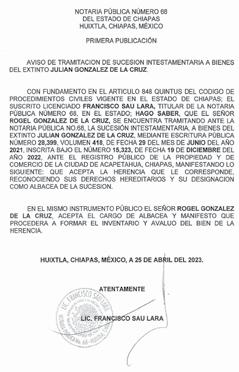 Tapachula, Chiapas. Martes 25 de Abril de 2023