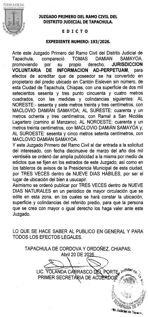 Domicilio: Av. Antonio D’amiano Cajas Manzana M Número 2. Fraccionamiento Insurgentes. Tapachula, Chiapas. C.P. 30700.