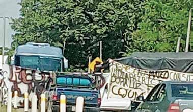 En ese punto colocaron dos unidades atravesadas y diversos objetos, además de que desplegaron mantas para exigir que se verifique el