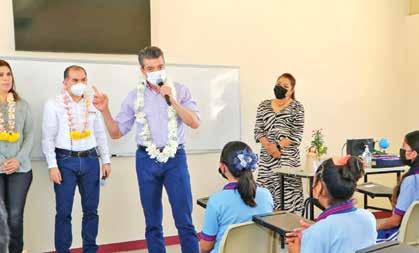 Tras recorrer las nuevas aulas que sustituyen a un edificio atípico que fue demolido, el mandatario mencionó que se continuará invirtiendo en las escuelas porque en éstas se imparten conocimientos, se fomentan los valores y se forma a las generaciones que representarán a Chiapas y México; por ello, reconoció la labor de las y los maestros que, con vocación, brindan instrumentos para ser mejores ciudadanas y ciudadanos.