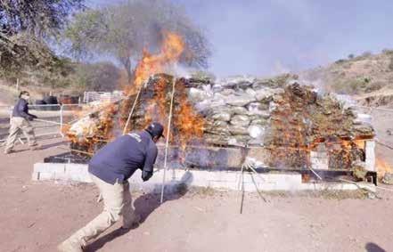 Guanajauto, Gto.; 24 de Noviembre.- Diversos instrumentos de delitos, armas de fuego y más de un millón 200 mil dosis de narcóticos ardieron entre las llamas hasta quedar en cenizas, en un acto oficial de destrucción de objetos y droga a cargo de la Fiscalía General del Estado (FGE).