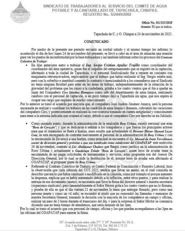 *Exigen Respeto al Contrato Colectivo de Trabajo.