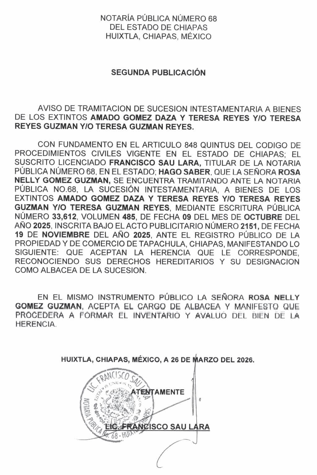 HOY JUEVES 26 DE MARZO