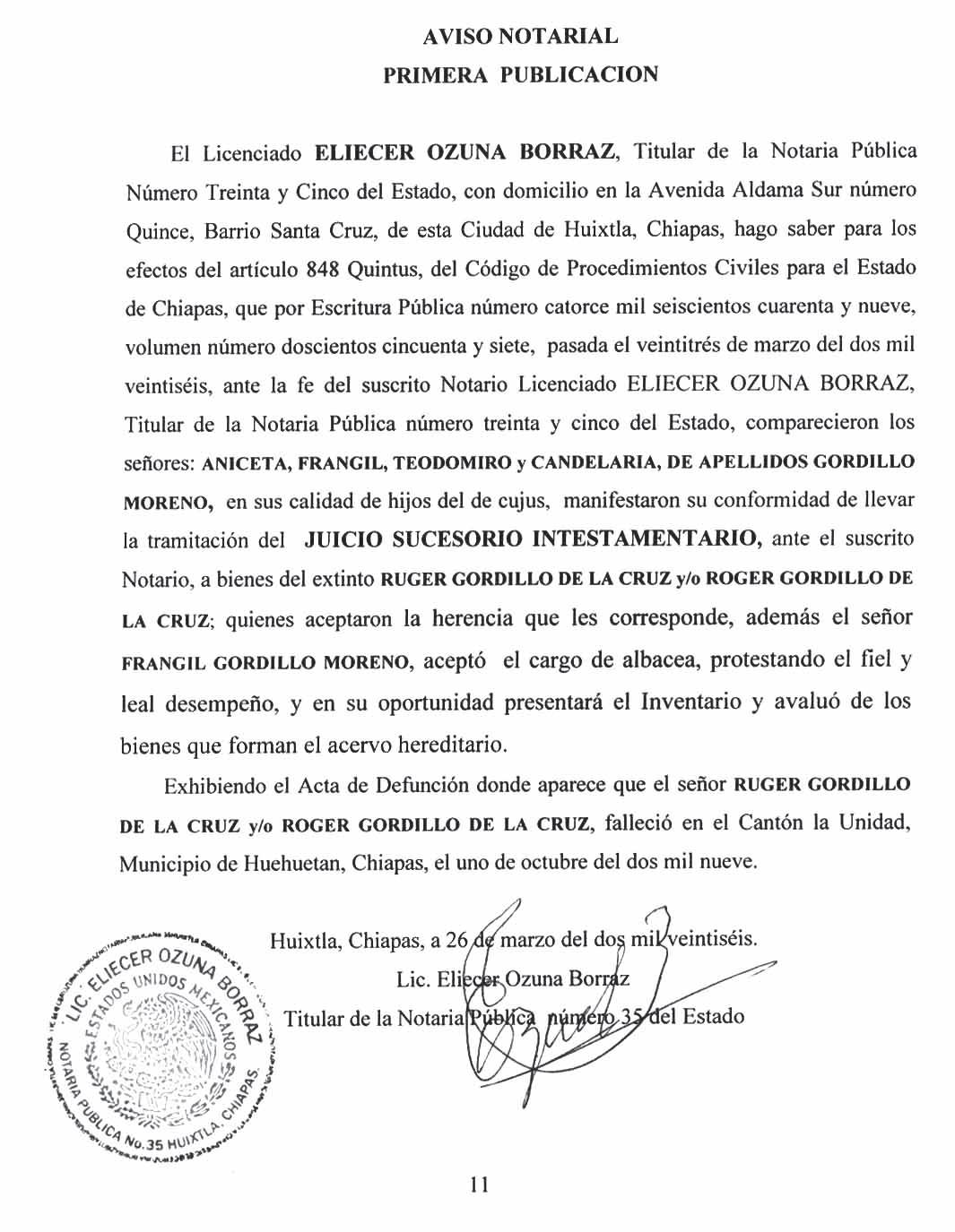 Tapachula de Córdova y Ordóñez, Chiapas;