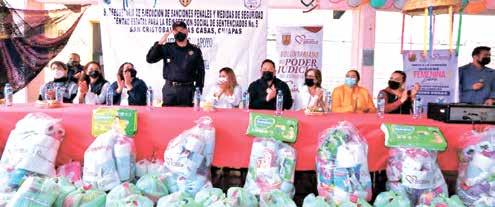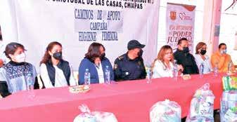 Posteriormente, la presidenta del Voluntariado del Poder Judicial, junto al subsecretario de Ejecución de Sanciones Penales y Medidas de Seguridad, comisario José Miguel Alarcón García, así como el director del Cerss número 5, Hugo Alejandro Hernández Serrano y damas voluntarias, entregó en propia mano kits de limpieza a mujeres del Centro Estatal de Reinserción Social Número Cinco de San Cristóbal de Las Casas, que contienen productos de higiene menstrual y personal.