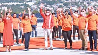 Como parte de la conmemoración por el Día Internacional de la Eliminación de la Violencia contra la Mujer, el gobernador Rutilio Escandón Cadenas encabezó la formación del moño naranja en la explanada del Parque Bicentenario de Tuxtla Gutiérrez,