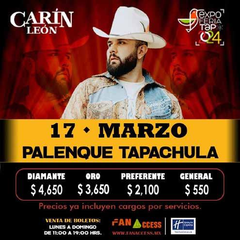 Carin León Cerrará de Manera Espectacular la Expo Feria Tapachula 2014 Ver Pág. 31