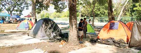 Las familias migrantes, en donde hay mujeres y niños, no cuentan con agua potable, tampoco alimentos y usan como baños las inmediaciones de dicho parque.