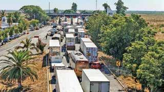 Carretera Gómez Palacio-Jiménez, el tramo Jiménez-Zavalza, kilómetro 230, Bloquean carril de mercancías del Puente Internacional de Palomas-Columbus, atravesando