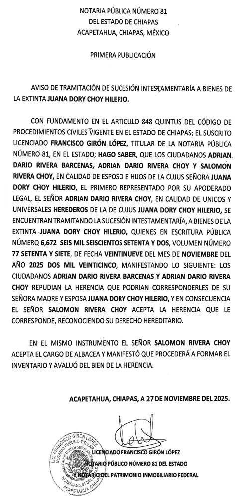 Tapachula, Chiapas; 26 de Noviembre del 2025.- Gabriel Díaz
