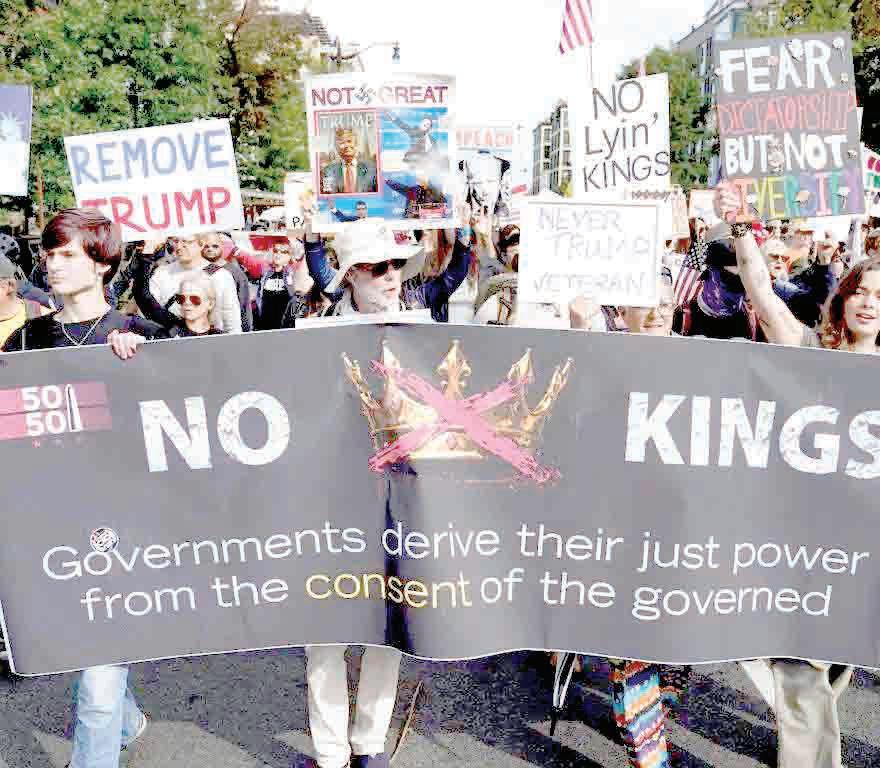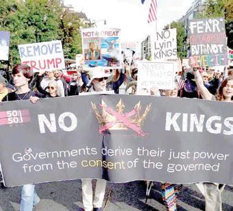 Nueva York y Washington. “El cambio de régimen empieza en casa” ,decía una pancarta, uno de incontables mensajes de repudio y resistencia contra el gobierno de Donald Trump en la magna movilización de protesta nacional “No a los reyes” realizada en más de 3 mil actos por todo Estados Unidos este sábado en lo que organizadores esperaban sería el día de protesta nacional más grande de la historia del país.