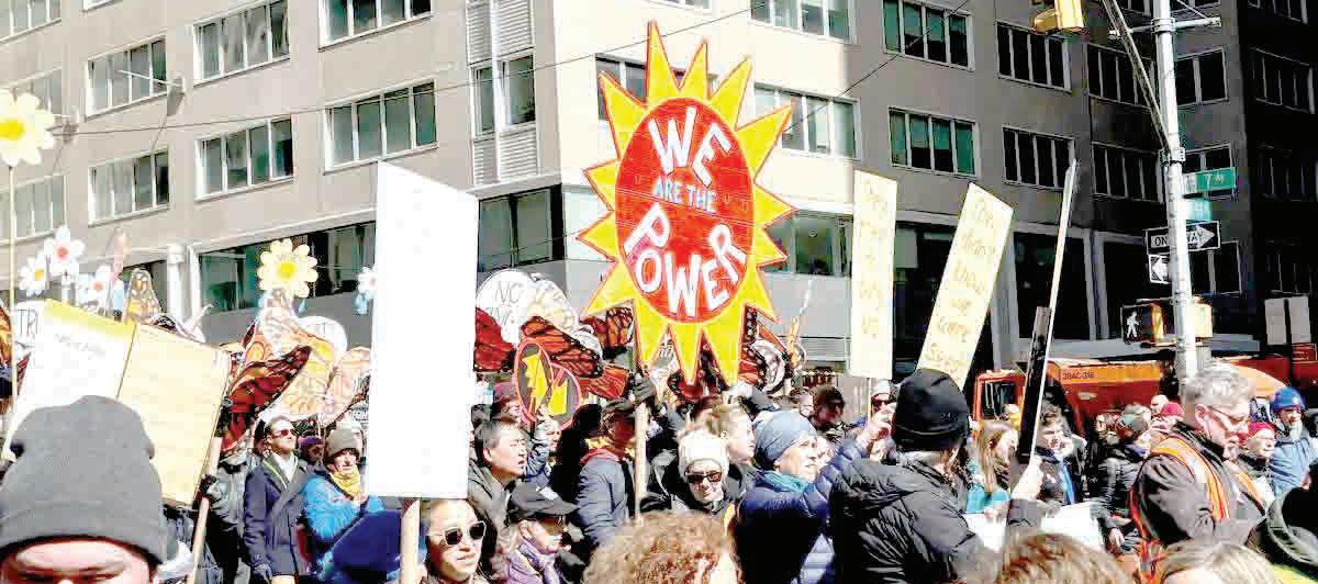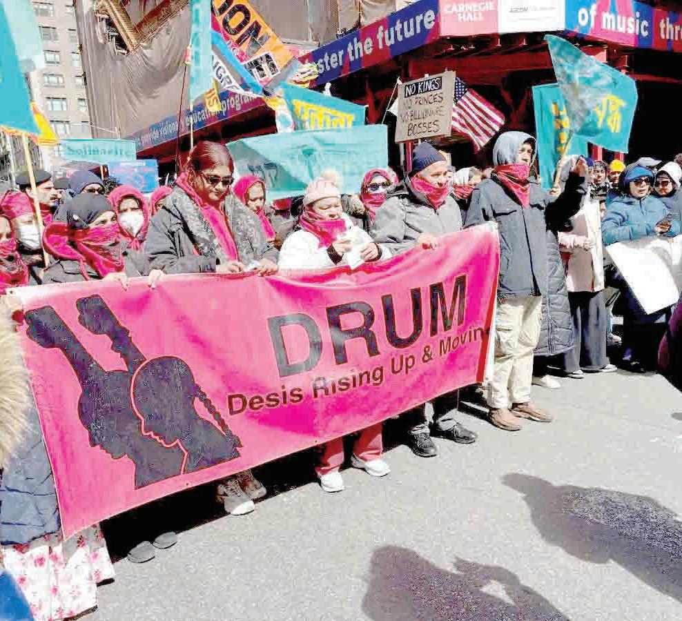 En Nueva York, decenas de miles -una de las organizaciones convocantes calculó 350 milmarcharon desde Central Park hasta la Calle 34, pasando por Times Square, y llegando a tal dimensión que tuvo que haber una marcha paralela por Broadway, ocupando por completo las dos avenidas. Marcharon en contingentes diversos sindicalistas del gremio de servicios, empleados universitarios, maestros de escuelas públicas, y más, mezclados con organizaciones de trabajadores de India y Bangladesh, agrupaciones en