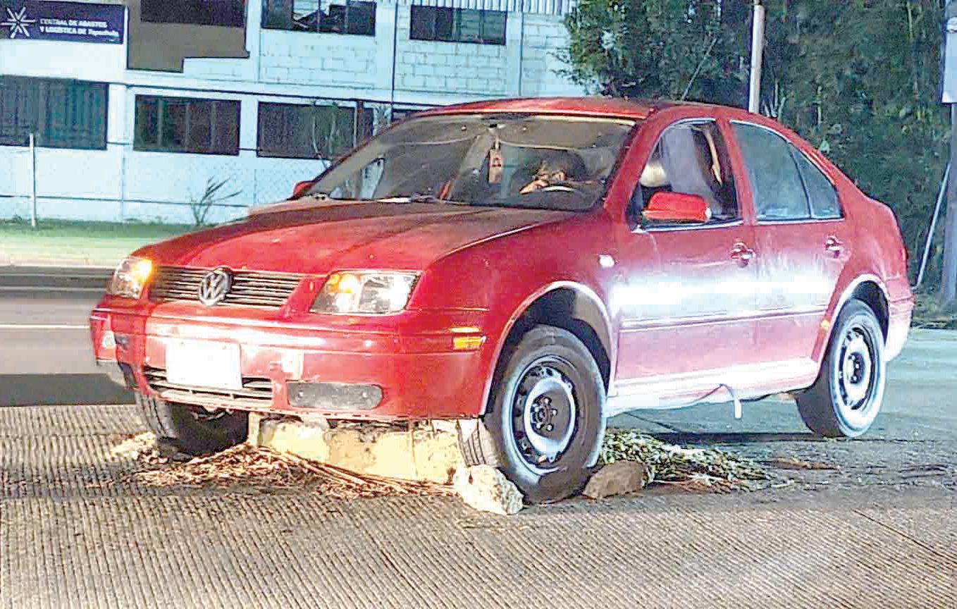 Tapachula, Chiapas.- La noche de este sábado, alrededor de las 20:30 horas, se registró un percance menor sobre la 4ª Sur Prolongación, a la altura de la tienda conocida como Boxito, donde un automovilista terminó montado sobre un camellón. De acuerdo con los primeros reportes, el conductor de un vehículo tipo Jetta color rojo