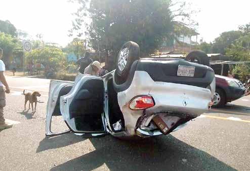 Tuxtla Chico, Chiapas; 29 de Marzo.- En el Libramiento Sur Oriente a la altura de la Glorieta del cantón El Sacrificio, el conductor de una Jeep de color amarillo por circular a exceso de velocidad perdió el control de su Jeep de Color Amarillo con placas de Circulación del Estado de Hidalgo, y terminó volcado sobre su costado izquierdo. La joven Nataly “N” de 23 años de edad, originaria del estado de Toluca, fue auxiliada por los mismos habitantes del lugar a salir de su vehículo. Cabe agregar que al lugar arribaron empleados de la Empresa Azvy Cointer México Delegación Tapachula para verificar que no hubieran daños en la carretera. Elementos de Vialidad Municipal de Tuxtla Chico arribaron y dejaron que el vehículo fuera