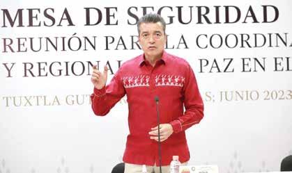 Al encabezar la Mesa de Coordinación Estatal para la Construcción de la Paz y la Seguridad, el gobernador Rutilio Escandón Cadenas informó que la Base de Operaciones Mixtas, conformada por el Ejército Mexicano, Marina, Guardia Nacional, corporaciones de seguridad, fiscalías e instituciones de procuración de justicia, trabaja en unidad por la seguridad de Chiapas, al tiempo de enfatizar que todos los delitos se investigan, persiguen y se sancionan, pues no hay impunidad para nadie.