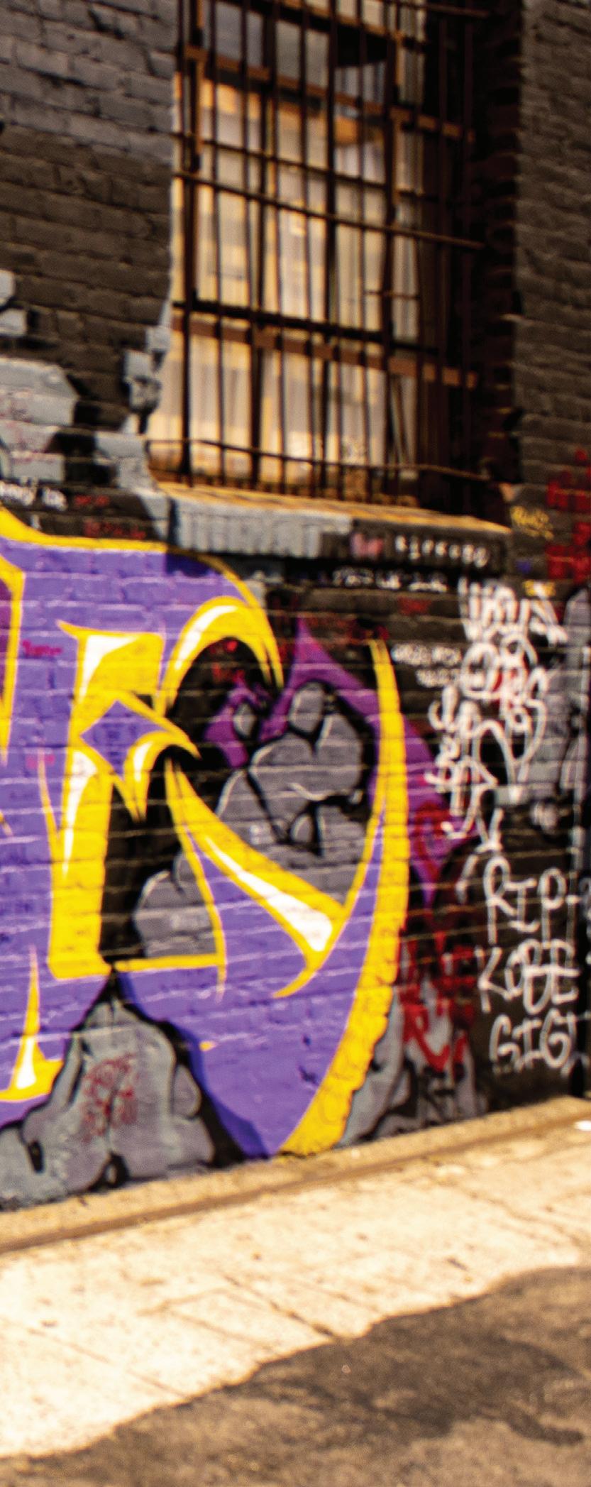positive messages in their work, for example, the art found in the streets of the Arts District in Los Angeles reads “You Are Not Alone” while inside a heart; Or the hundreds of infamous murals of Kobe Bryant all around the City where people can go and pay their respects to a symbol and an icon of all of Los Angeles.