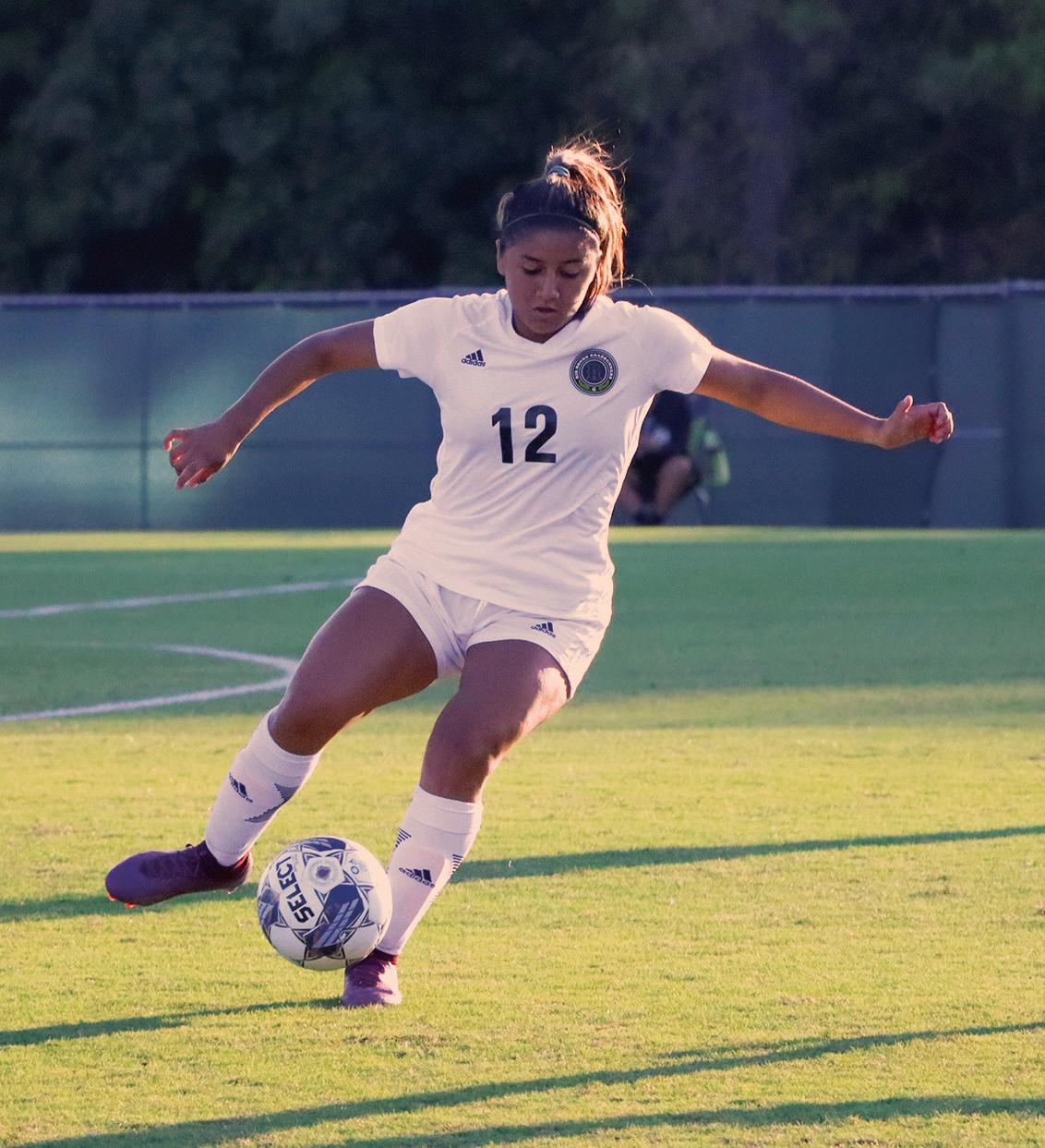 Photographed by: Matthew Medina El Paisano Media DM (defensive midfielder) Natalia Molinares dribbled across the field at LA Harbor, Oct. 11. RHC beat Los Angeles City College away from home Oct. 14.