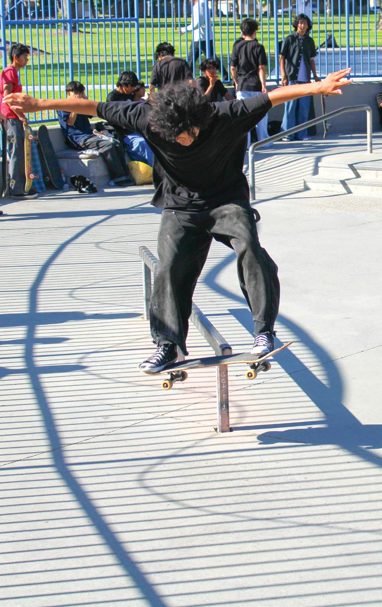 About 15 minutes from the Vans event a local event was hosted at Centennial park located at 3000 W Edinger Ave, Santa Ana, CA 92704. Local skate shops La Cuarto threw this event where Svint Clothing and the Orange County project all came together to sponsor a huge event and provide many things for the people attending. A lot of the youth was there with over 80 people being there. There were three events hosted: highest ollie, best trick down the eleven stair, and best bank trick. Boards and money were given to the winners.