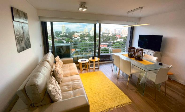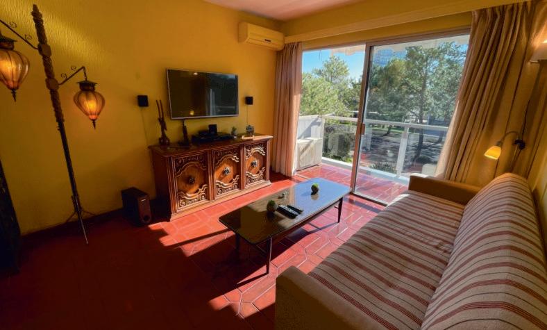 APARTAMENTO de 2dormitorios y2 baños, con capacidad para 5personas, cerca de la playa. Amplio balcón con parrilla, cocina semi integrada yliving comedor. Amenities como piscinas climatizada yalaire libre, mucamas ymás.