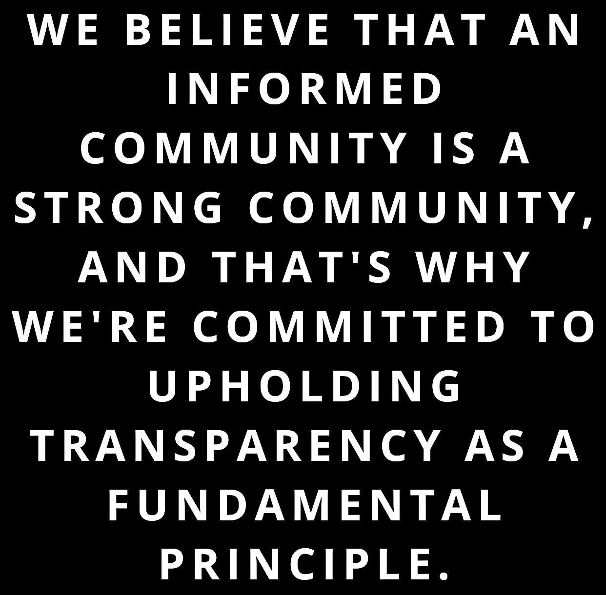 This month's theme – transparency – resonates deeply among our core values. Transparency is more than a buzzword; it's the cornerstone of effective governance. We believe that an informed community is a strong community, and that's why we're committed to upholding transparency as a fundamental principle.