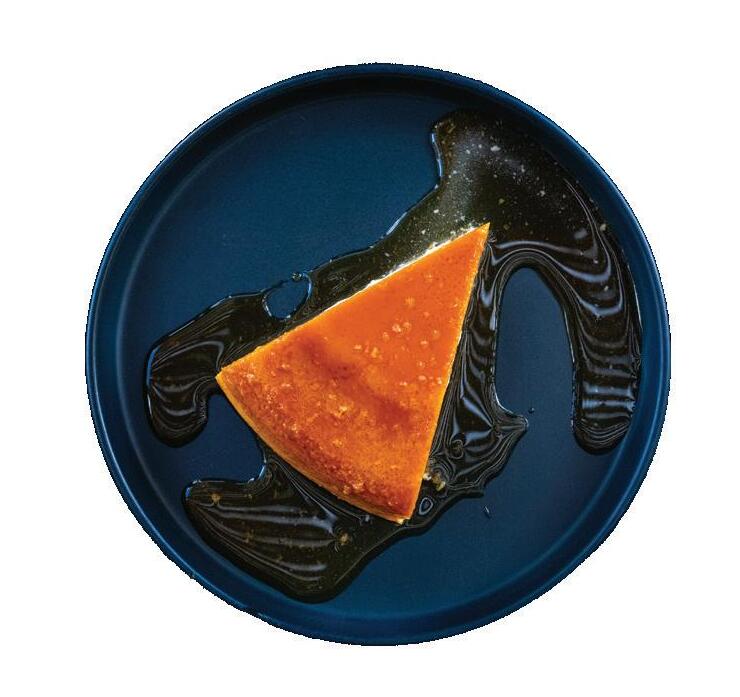 Jamón, piña caramelizada con melao de la región y mozzarella. Ham, caramelized pineapple with regional molasses, and mozzarella.