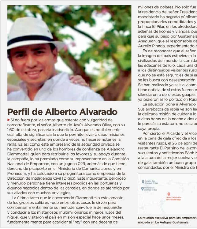 El 22 de agosto de 2021, elPeladero daba a conocer sobre la visita de empresarios rusos al país, quienes fueron atendidos “a cuerpo de rey”. La tarea de Alberto de Jesus Alvarado fue de resguardar y conducir a los misteriosos multimillonarios mineros rusos del niquel que vinieron a repartir millonarias coimas a cambio de que les cedieran un espacio exclusivo en el Puerto Santo Tomás de Castilla.