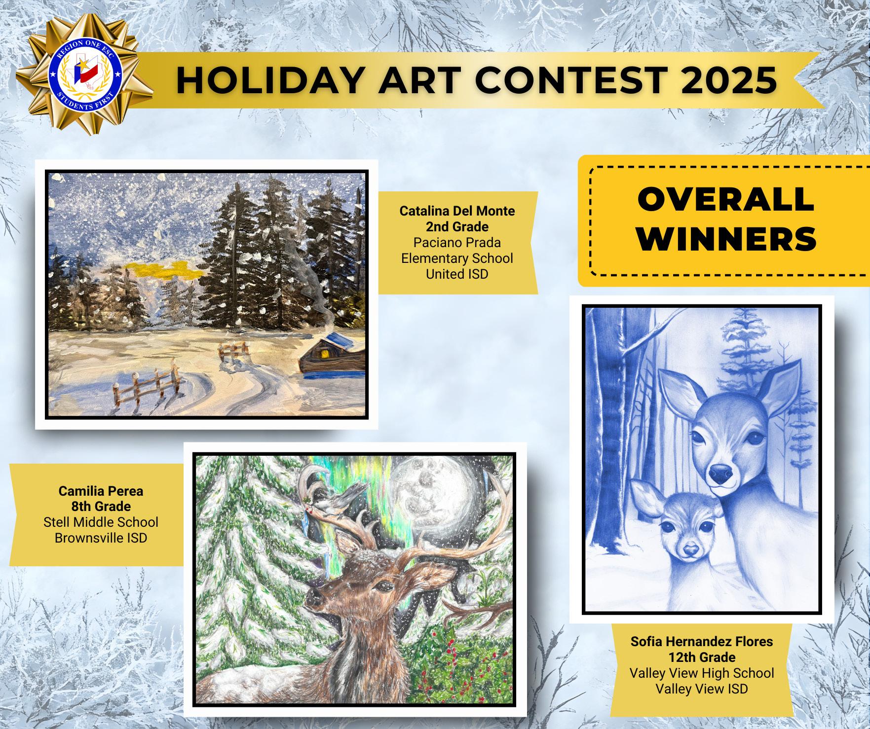 The three winning pieces will appear on the official Region One ESC holiday card, shared with superintendents, school districts, partners, and statewide education agencies. Each student will also receive an art