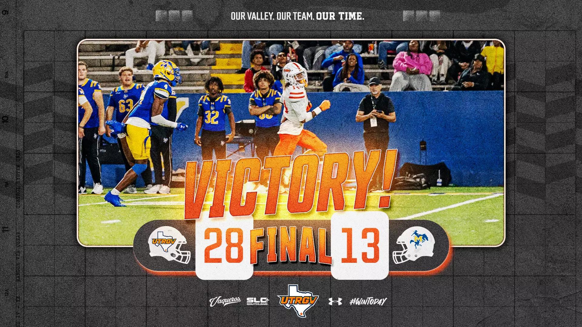 LAKE CHARLES, La. – (RV) The University of Texas Rio Grande Valley (UTRGV) Vaqueros football team earned its first-ever conference road win and second road win of the season, beating the McNeese Cowboys 28-13 on Saturday at Navarre Stadium.