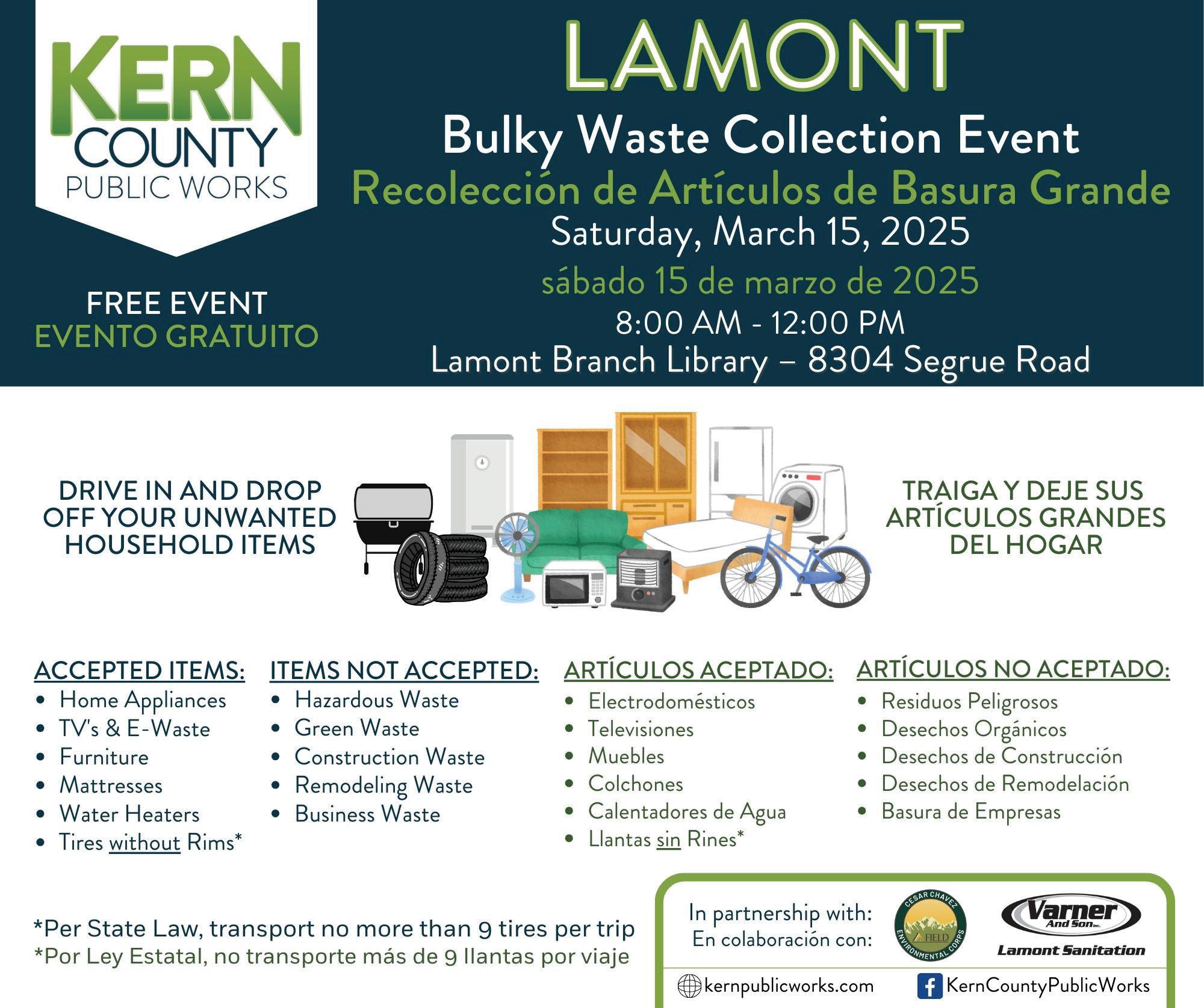 Las personas discapacitadas que necesiten asistencia especial para asistir o participar en un taller virtual de Planificación y Recursos Naturales del Condado de Kern pueden solicitar asistencia en el Departamento de Planificación y Recursos Naturales del Condado de Kern, 2700 “M” Street, Suite 100, Bakersfield, California 93301, o llamando a Keith Alvidrez al (661) 862-5015. Se hará todo lo posible para acomodar razonablemente a las personas con discapacidades haciendo que los materiales de la reunión estén disponibles en formatos alternativos. Las solicitudes de asistencia deben realizarse con cinco (5) días hábiles de anticipación siempre que sea posible. LORELEI H. OVIATT, AICP, Directora del Departamento de Planificación y Recursos Naturales Se publicará una sola vez el 14 de marzo de 2025