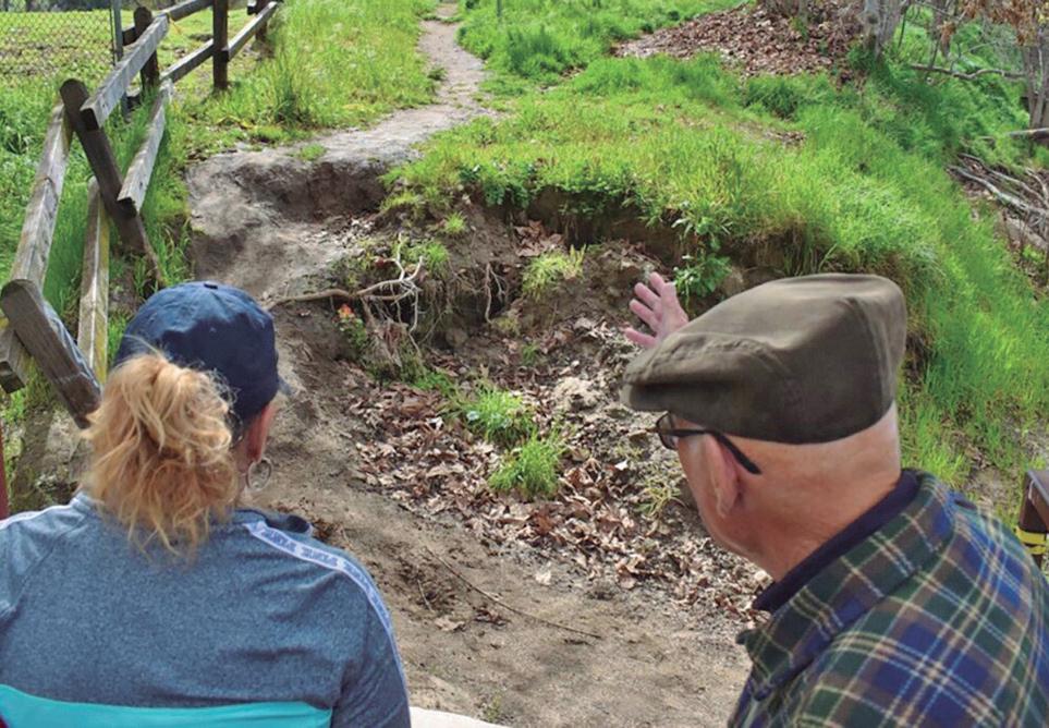Laine también advirtió que la erosión está creando riesgos de seguridad, especialmente las áreas que afectan cerca y en el sendero a lo largo de la orilla del río. Algunas áreas se han vuelto inestables y las cercas rotas se suman al riesgo.