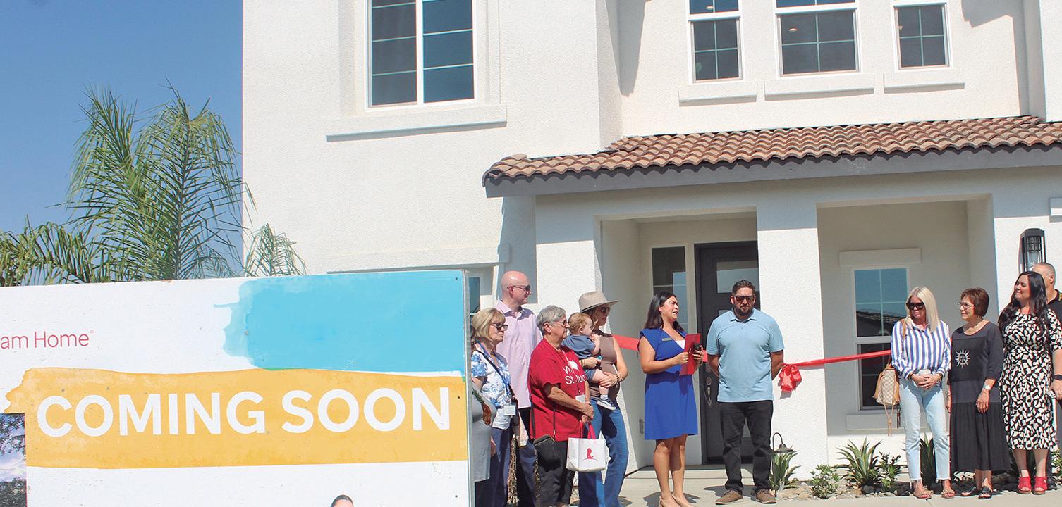 Sophia Baroz, representante de St Judes en California, está a punto de cortar el listón de apertura con el representante de la constructora John Balfanz, JR McCann, quienes dieron por abierto la nueva casa que se rifará en noviembre de St Jude.