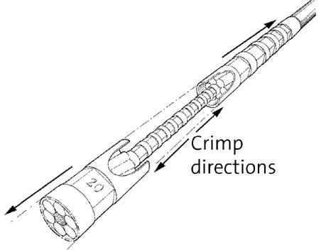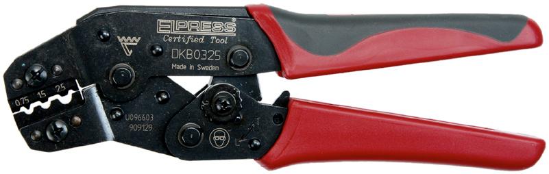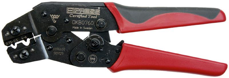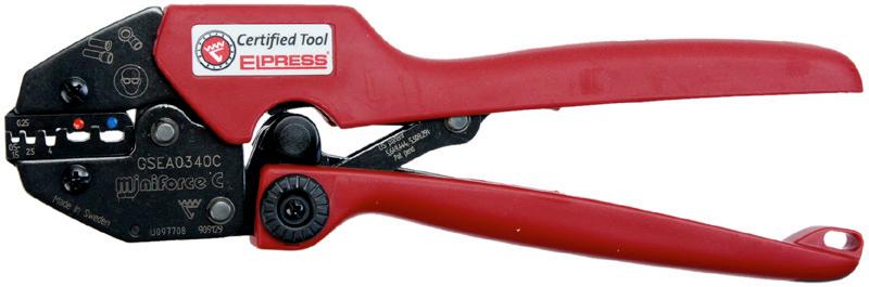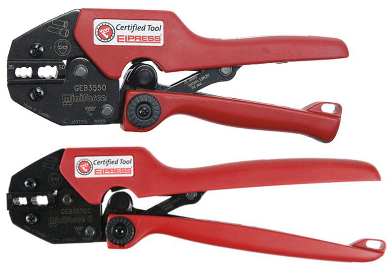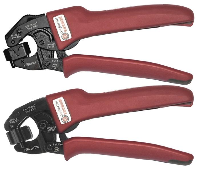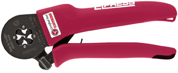 Elpress 预绝缘端子标有徽标、横截面区 域以及任何适用的螺丝直径,以方便工作 和可控性。当压接预绝缘端子时,Elpress 压接模具/工具会在绝缘套管中留下印记, 以便所有压接端子均可按照要求的多项标 准进行追溯性检查。