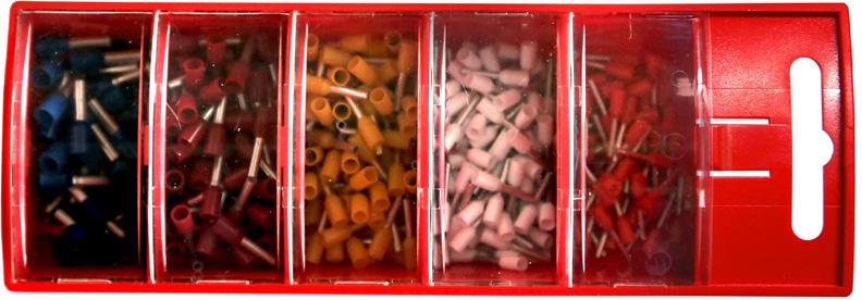 Elpress 绝缘套管通常由无卤素聚碳酸酯 (PC)制成,具有出色的变形性能。此外, 它在高温下仍能保持抗振动特性。在接 触碱性物质时必须小心谨慎。有些型号 有PA,尼龙的绝缘层,这也是无卤素的或 PVC(非无卤素)。绝缘套管的颜色表示端 子的横截面区域: