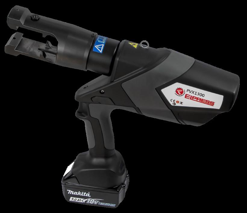Tested and certified battery-powered crimp tool for contact crimping Cu-terminals, type KR/KRF and KS/KSF 10-400 mm², Cu-windings 9,9-343 mm², Al-windings 8,8-100 mm², Al-terminals 10-400 mm² (-240 solid).
