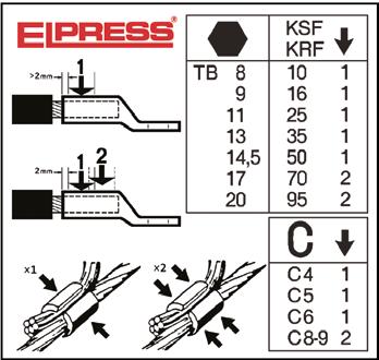 Pressverktøy til Cu- og Al/Cu forbindelser