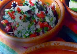 • Exprime las limas y echa el zumo en el vaso de la batidora con los chiles sin rabito ni pepitas y hojas decilantro.