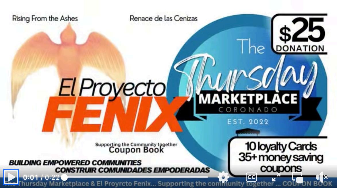 Buy a coupon book and enjoy great savings. Proceeds support EPF’s building the first Fenix Community. Available at The Thursday Marketplace, every Thursday, rain or shine, from 9 to 1pm. Get one before they sell out!