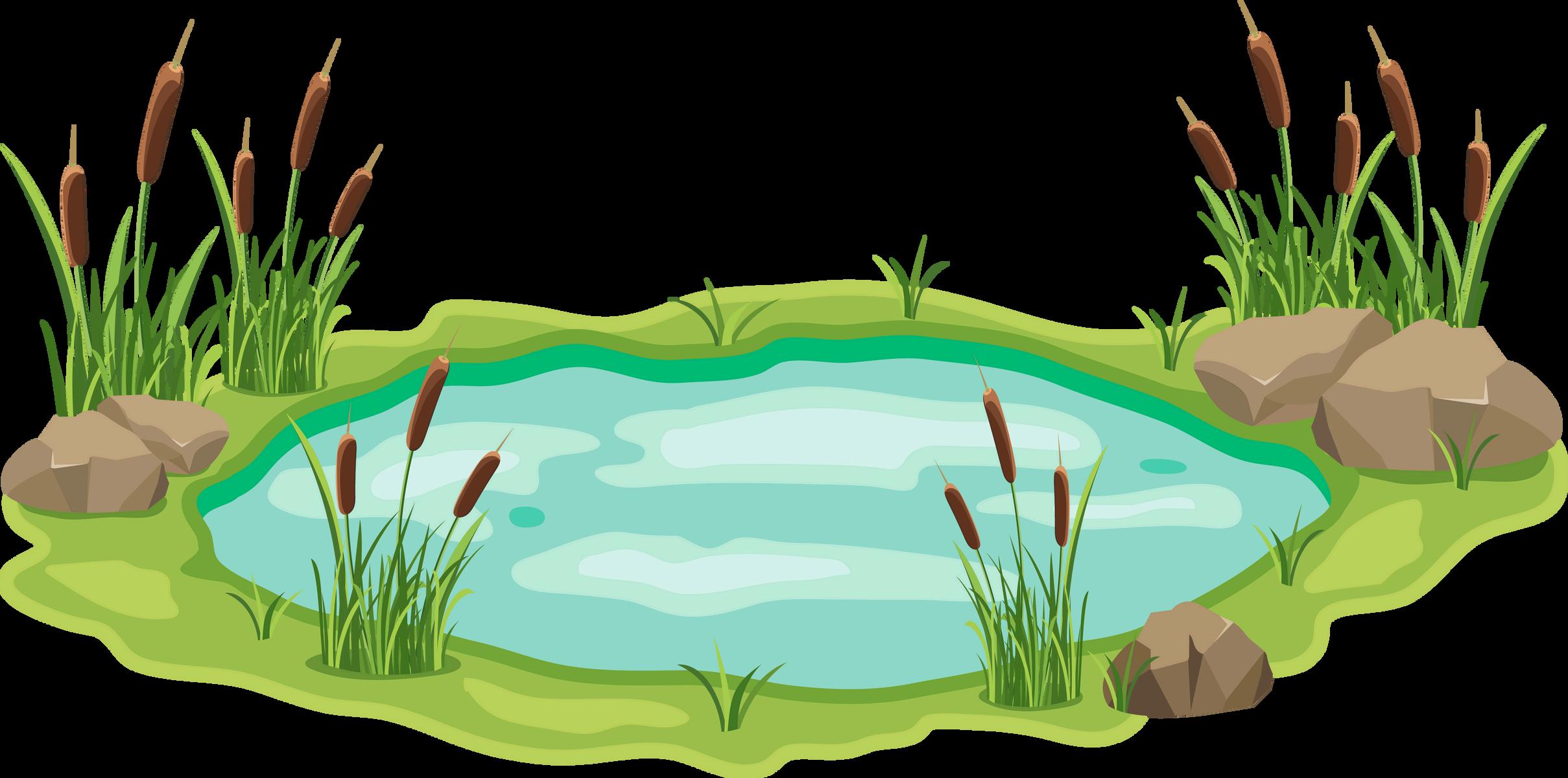 Thepondhaslots ofrocks. MattandNelljump ontherocks.