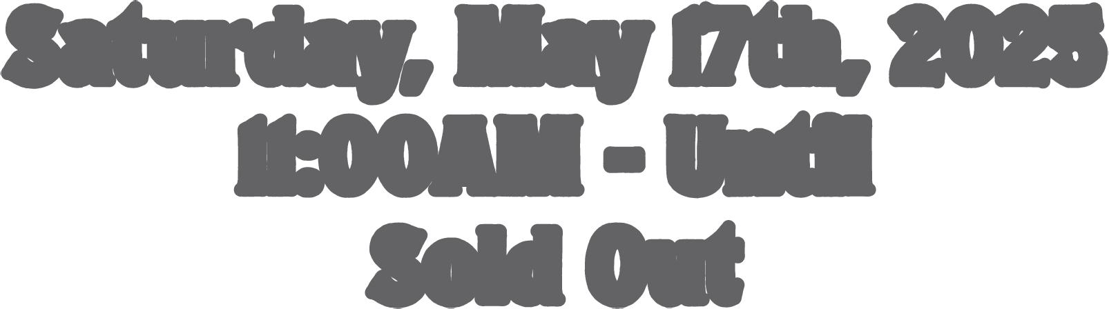 Saturday, May 17th, 2025 11:00AM - Until Sold Out