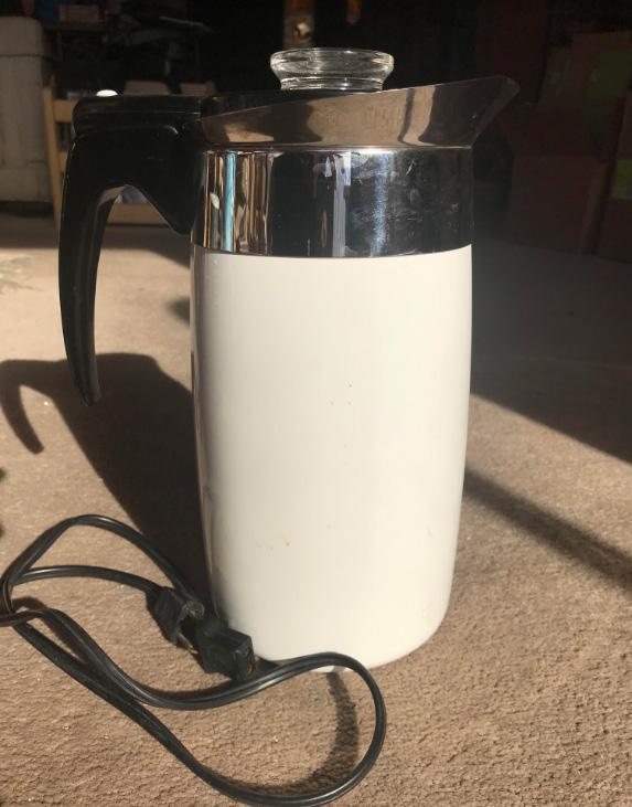 VINTAGE 10 cup Corningware electric percolator, Classic white. Like New. 760-9203975. 52 (4)